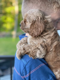 They're here! Noel showed signs of early labor during the day on Friday, 5/28, and stuck close to my side.....well, more like on my feet - on my lap - against my legs. At 9:44PM contractions began and momma welcomed her first babe (apricot male) at 10:43PM. By 2:45AM all of her littles had arrived (6 in total - 4 males, 2 females). The pups are nursing well and snuggling with momma. We are thankful for a healthy delivery for Noel and a beautiful litter of Cockapoo puppies.