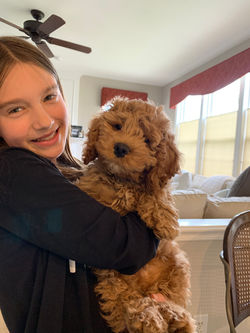 "We are so happy to have Hailey in our family and for Destiny for her help in preparing us for Cockapoo ownership. When we went for the puppy visit, we were impressed by the family atmosphere that Destiny created for her dogs. Destiny provided us with a lot of good information when bringing Hailey home, and she continues to be a resource for us for any questions we have - 3 years later! Hailey is a sweet, loving dog and enjoys snuggling up with the family. She is completely adorable and the best dog ever. Hailey is really smart and knows a lot words. If we say, "Go get your frisbee", she gets the frisbee! She loves going on her walks, playing with friends, chasing her favorite toys and especially climbing on rocks. Again, best dog ever and we can't image our family without her!"