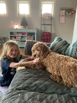 "We are so thankful that our journey to bring a dog into our family was by way of Destiny! I was the holdout in our family when it came to adding a dog. I knew we would do it, but I just couldn't see the path clearly. We were lucky enough to meet another dog who was born at Destiny's home. The kids were calm and comfortable with him, he was truly the perfect dog. I said to our family, let's get a dog just like him! We were fortunate to have a glowing referral to go by, and as expected, Destiny was a pleasure to work with. Her communication was great, her expertise was evident, and her home was so loving. She truly has a passion for her dogs and it is evident in her meticulous process. We surprised our kids by meeting Cole in June 2018. He was (and is) the sweetest thing. Cole at almost 3 years old is a gentle, old soul. He is a constant companion to all four of us and we sometimes fight about who gets his cuddles. He is great around other dogs, loves to visit (human) relatives and friends and is healthy and strong. He cracks us up daily and we love having him in our family. Destiny is always available to share her knowledge and experience and cares deeply about every pup she has placed. I recommend cockapoos and Destiny often to families considering a dog. It has been a perfect match for us."