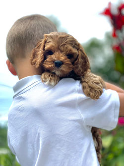 "We got our beautiful little red Cockapoo, Alfie, from Destiny a little over a year ago. He is utterly beautiful, sharp as a tack, and very cuddly. We could not have been happier with Destiny, as a breeder. She was always there to answer questions and provide advice, before and after our puppy adoption. She has year of experience in Cockapoo breeding, and really knows her stuff. We went to her house to pick out the puppy, and everything was in perfect order. We were able to meet his lovely mom, and see how she was her babies. Destiny's four boys are a bonus--so loving to the puppies that they really come to their new homes well-socialized. Destiny was warm and professional every step of the way. Our little Alfie is as beautiful, smart and sweet as a cockapoo could be.