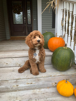 "Deciding to bring a puppy into our home was a year-long, thoughtful process. Our ten-year-old daughter wanted nothing more, my husband was a veteran dog owner and fully onboard, but I had never owned a dog. I was nervous. But from the moment we found Destiny, we found a perfect fit. It was clear from the application process that not only were her puppies loved and nurtured from birth, but the families they ended up with mattered too. As he grew, we were able to follow our puppy's litter online with pictures and updates of him nestling with siblings, learning to navigate on all fours, and being loved by Destiny's boys. There were explanations about how the puppies were encouraged to potty train, crate train, and the beginnings of socialization, all within a loving, home environment. Destiny provided all the information we needed on what to expect before we brought our new puppy home. In April 2020, just after the start of the pandemic, we finally picked up our new bundle of fur, Winston (aka Burple). Destiny couldn't have been more helpful safely arranging the pick-up, and since that time, she has always been available to answer any questions we have had. Being raised in a loving, family home made Winston's transition to our's virtually seamless. He was easily potty-trained within a few weeks, appreciated his toys (versus chewing on our sofa!), was not afraid of strangers or other dogs, and was eating kibble. Winston is now the center of our home. At eleven months old, he's approximately 27 lbs. (biggest in his litter), grazes during the day, is super excited for his walks, and has the sweetest disposition. We would definitely work with Destiny again!"